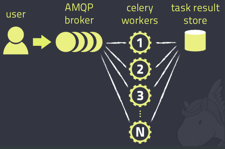 结果存储:backend,函数return的结果存储在这里,celery本身不提供结果存储,借助于第三方:redis,数据库,rabbitmq