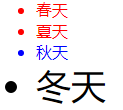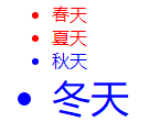 <ul> <li class="red">春天</li> <li class="red">夏天</li> <li class="blue">秋天</li> <li class="blue font35">冬天</li> </ul>