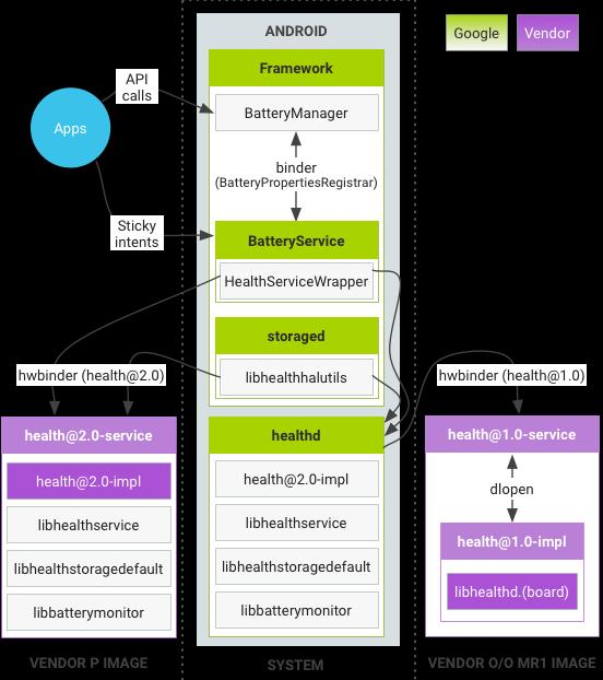 AndroidP 引入了从 health@1.0 HAL 升级的主要版本 android.hardware.health HAL 2.0。新版 HAL 具有以下优势: