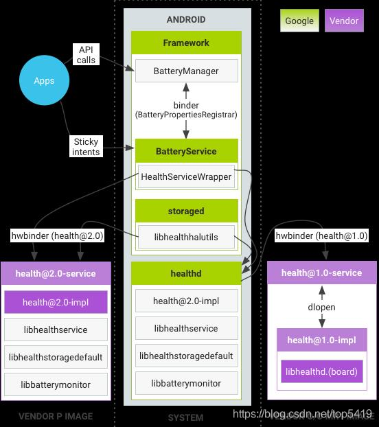 health@2.0:android.hardware.health@2.0 的缩写,指的是 Android 9 中发布的运行状况 HIDL 的 2.0 版 HAL。