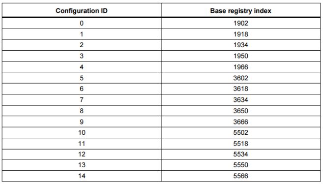 例如:CFG0,CFG0_2,CFG0_3; 一共15个地址。不考虑兼容的情况下,常用的Configuration ID就是 0-4 ,即1902,1918,1934,1950,1966。
