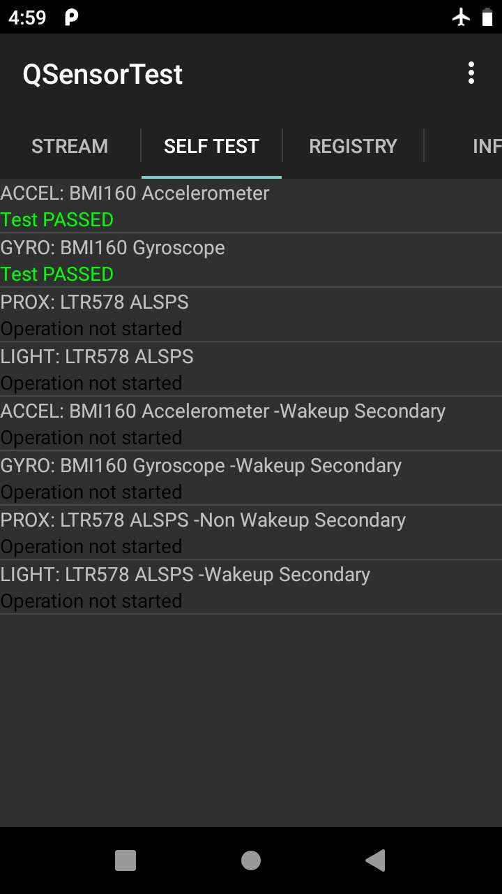 Qsensortest -> Self Test -> Options -> choose “OEMTEST” type -> run test for Accelerometer sensor