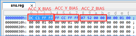 这个ACC_Z_BIAS值既是 校准到当前数据与标准值的偏差,这个值会被存储到sns.reg文件中,