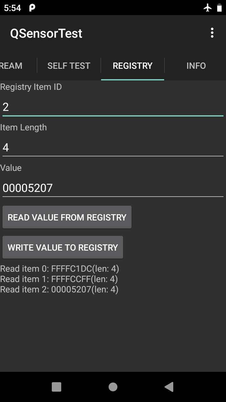 成功的校准后,可以通过QsensorTest读取以下寄存器地址的值