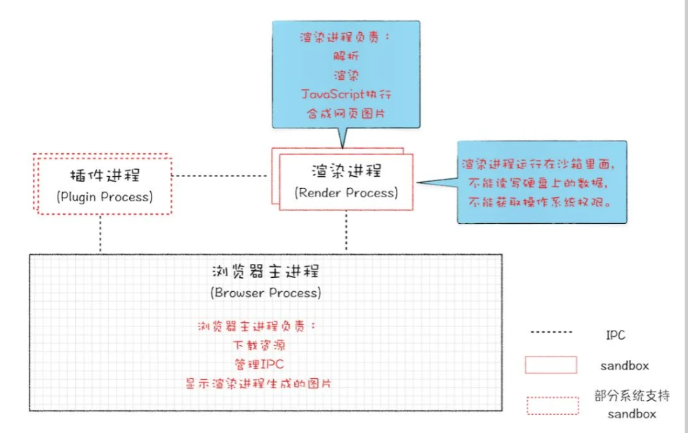 采用多进程架构的额外好处是可以使用安全沙箱,你可以把沙箱看成是操作系统给进程上了一把锁,沙箱里面的程序可以运行,