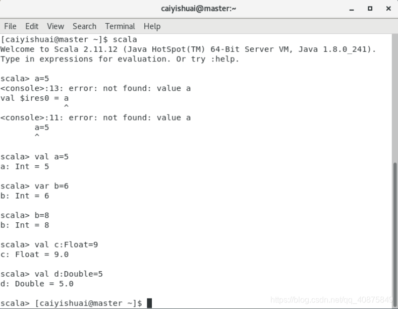 指定类型方式:用冒号“:”:例如:val c:Float=5