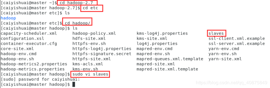 - slaves文件位置:hadoop-2.7/etc/hadoop