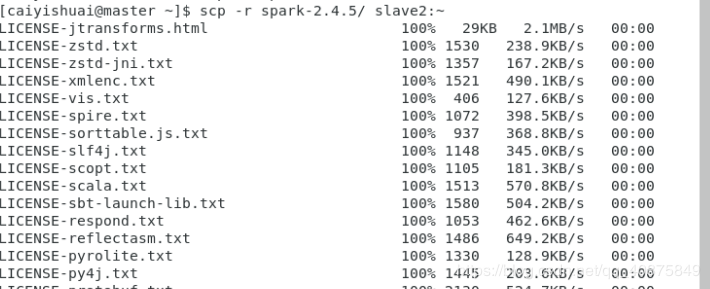 - 配置完成后,要将配置好的拷贝到其它的所有节点。每个节点的spark和hadooop配置应相同。