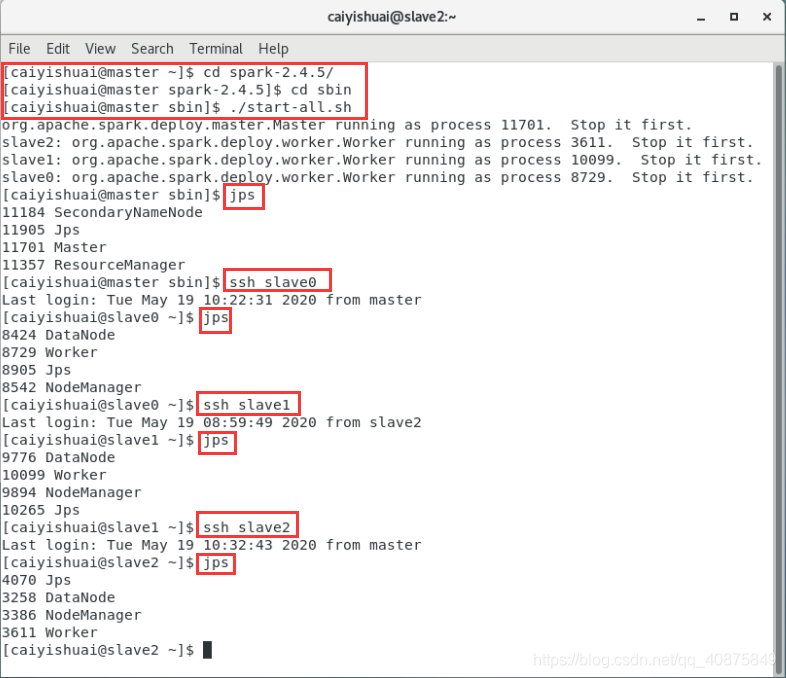 - 启动顺序是:hadoop的start-all.sh,spark的start-all.sh。