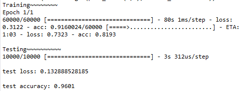 model.fit(x_train,y_train, epochs=1, batch_size=32) #训练2大批,每批32个