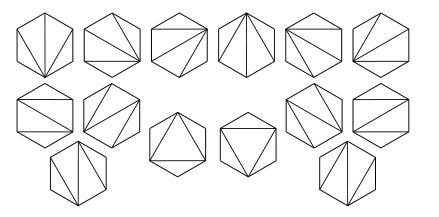 把一个凸六边形分割成若干个的三角形(必须全都是三角形),一共有几种方法?如果是凸N边形呢?