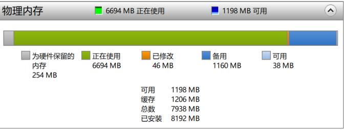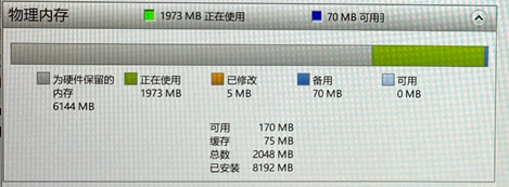 电脑一共8192M的内存,居然6144M都是为硬件保留的内存,导致一开机内存使用率就接近100%。