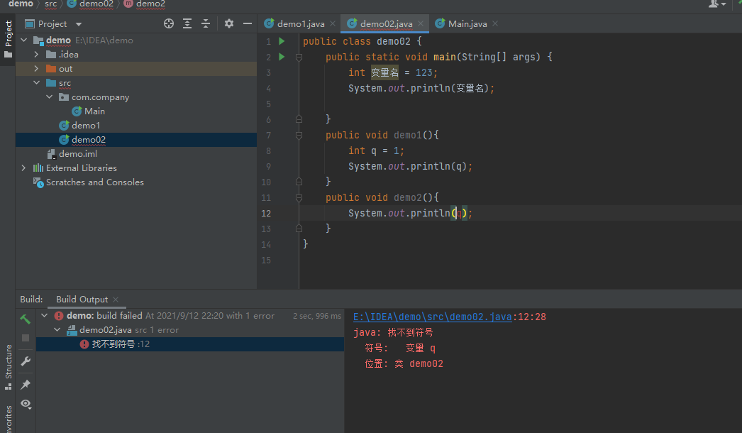 局部变量就是在方法里面声明变量,只能被这个方法使用,我在demo1里面声明的变量,在demo2里面是不能被使用的。