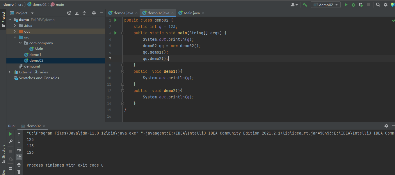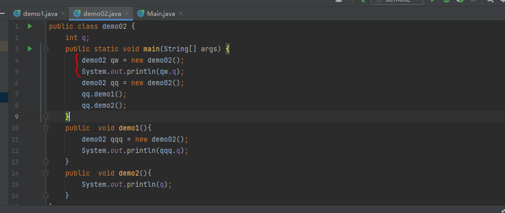 在图中可以看到,我在类里面声明一个类变量之后,在主函数和其他两个方法里面也是可以直接使用的。