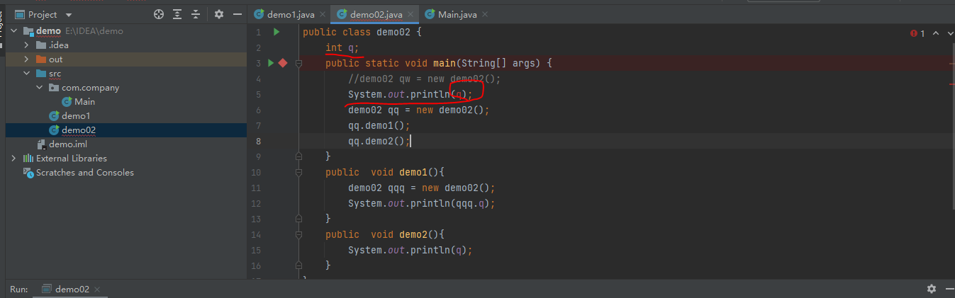 我声明一个实例对象,我在main函数里面没有new,是直接爆红的,不能使用的。