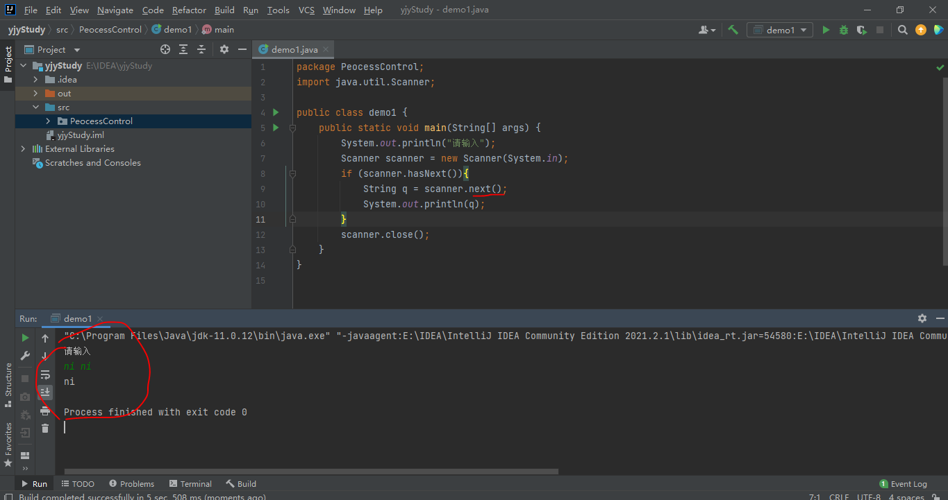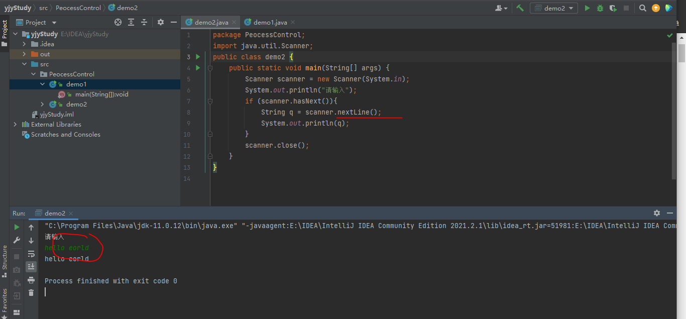 上面这个是nextLine()方法,他的就是可以读取空格,并且结束是以Enter键。