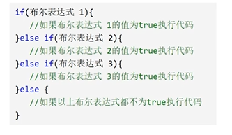 这个是多选的结构,我们可以看到,每个if后面都有一个布尔表达式,也就是只要进入if里面条件满足返回值为true,则直接执行括号里面的语句块,跳过其他的if语句块。不演示了。