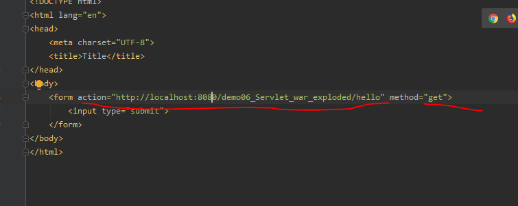 其中表单属性中action的值为web.xml文件中url路径,后面的method就是表单的请求方式