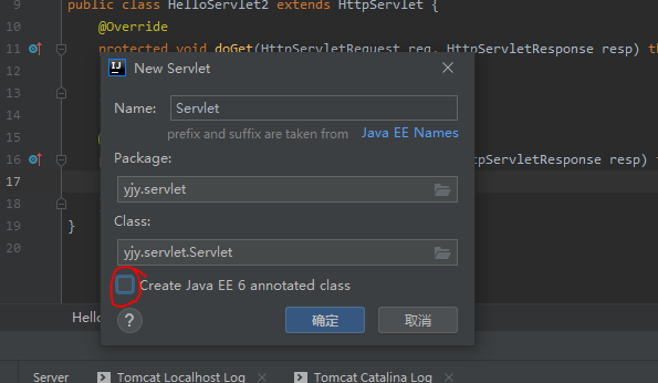 除了我们自己配置之外,我们还可以使用IDEA自动创建Servlet程序: