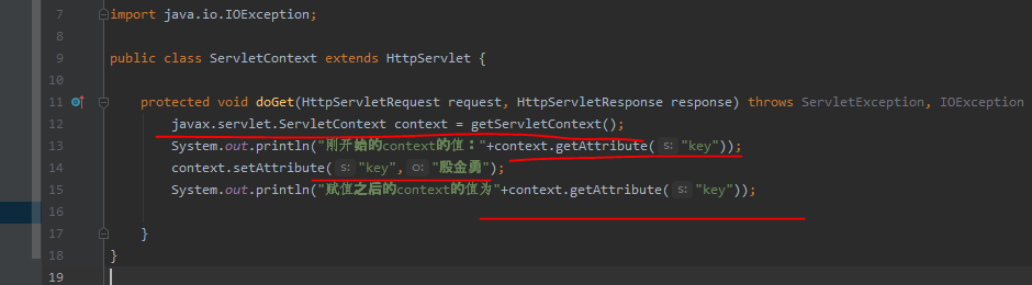 然后我这个并不是在上面那个赋值的程序里写的,而是在额外的类中创建的,所以我们可以看出这个ServletContext是整个web工程都可以使用的。接下我们给他赋值: