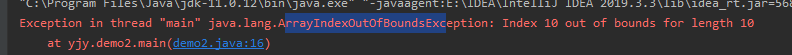 超出边界了,因为数组的下标是从0开始的,所以下标为10的数组其实就是第十一个数组。