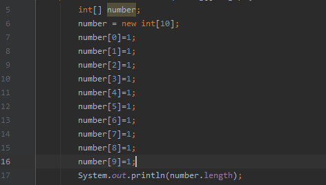 number是数组的名称,new是创建 int[10],是个数组,意思是给number这个数组创建十个int数据类型。