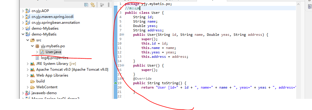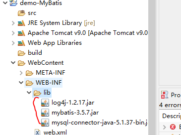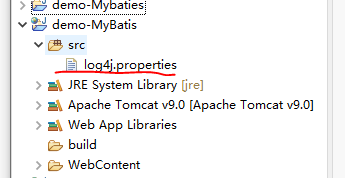 MyBatis默认使用log4j输出日志信息,这个是在src目录下创建: