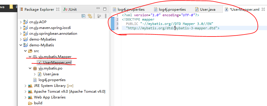 这里需要在/src目录下创一个专门的包,在里面创建UserMapper.xml:
