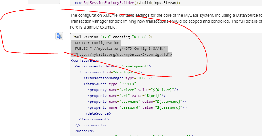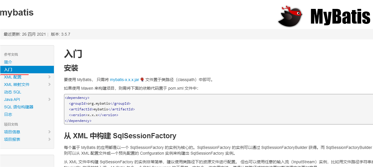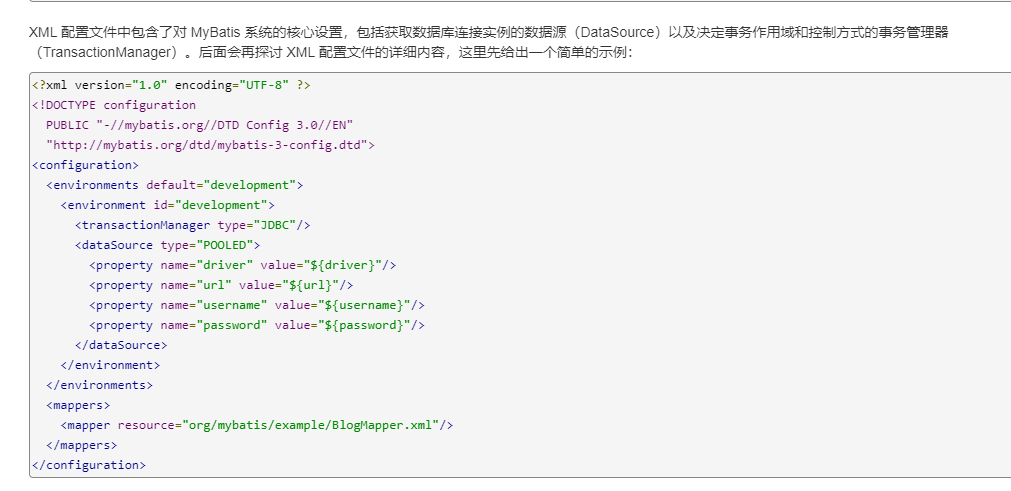 在文件中信息,可以在开发手册上找到:https://mybatis.org/mybatis-3/getting-started.html