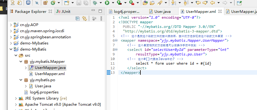 下面我们在实际操作中配置,同样这个也是在映射文件UserMapper.xml中配置: