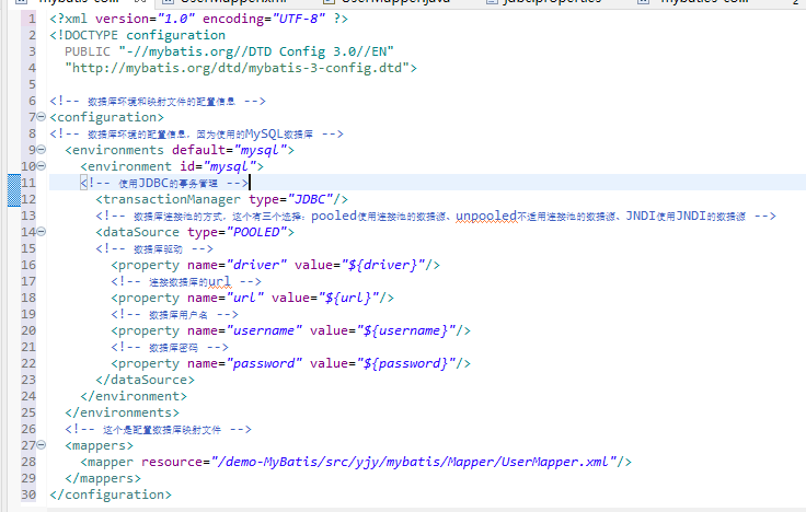 这个是在src目录下创建mybatis-config.xml,并且在该文件中配置了数据库环境和映射文件的位置: