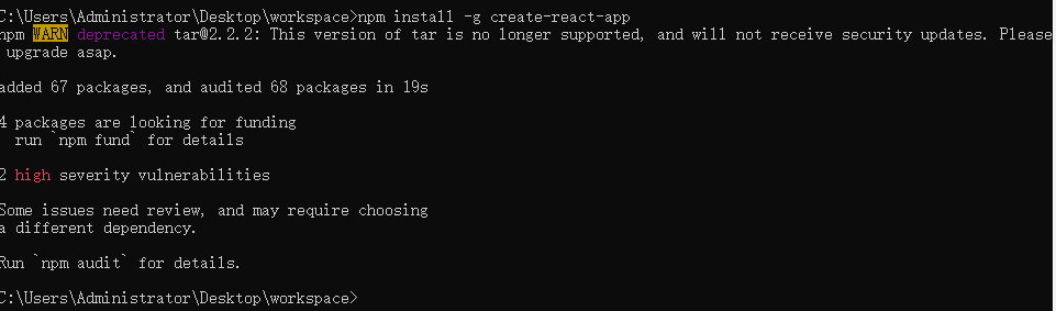 全局下载工具:npm install -g create-react-app,来下载我们要使用的脚手架。