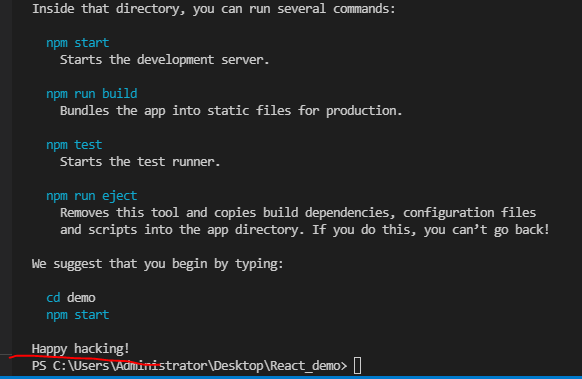 第三步就是使用create-react-app这个脚手架创建项目模板:create-react-app 项目名称