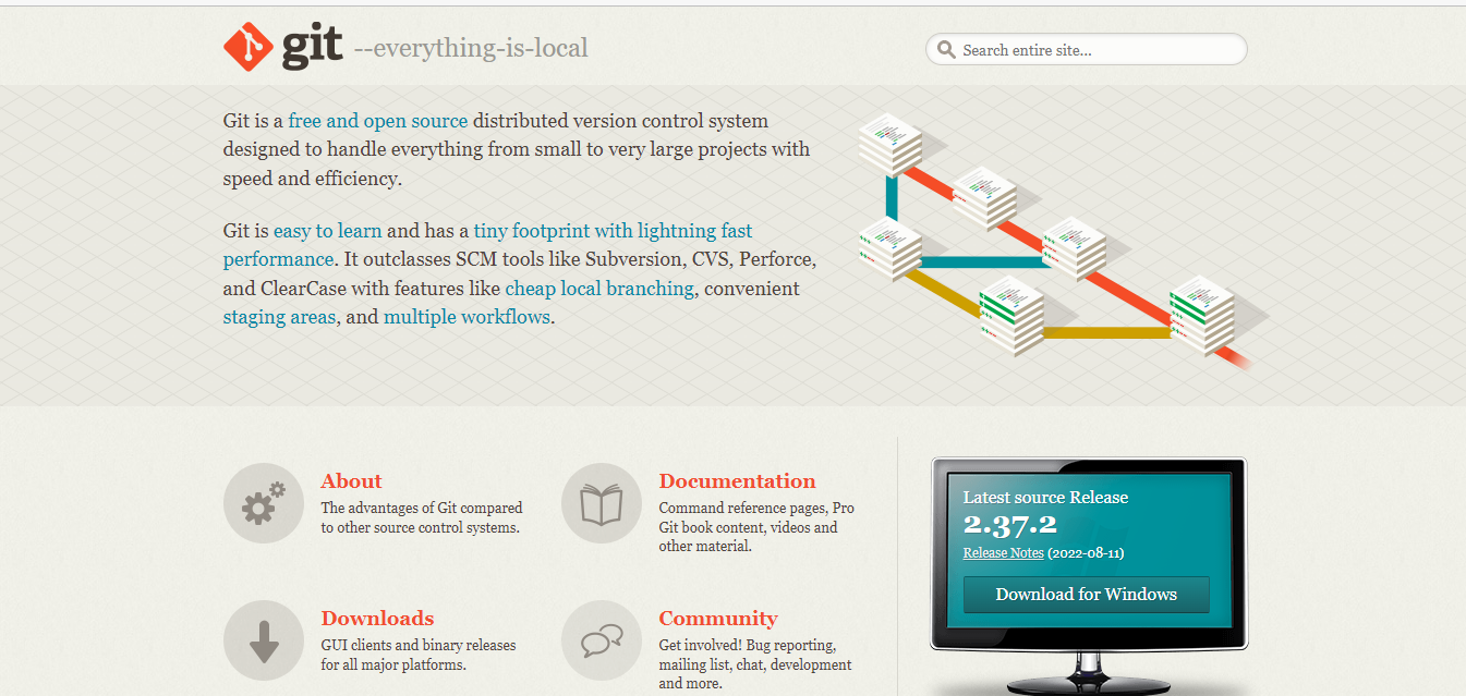 1.在官网下载Git工具(Git (git-scm.com)),页面如下