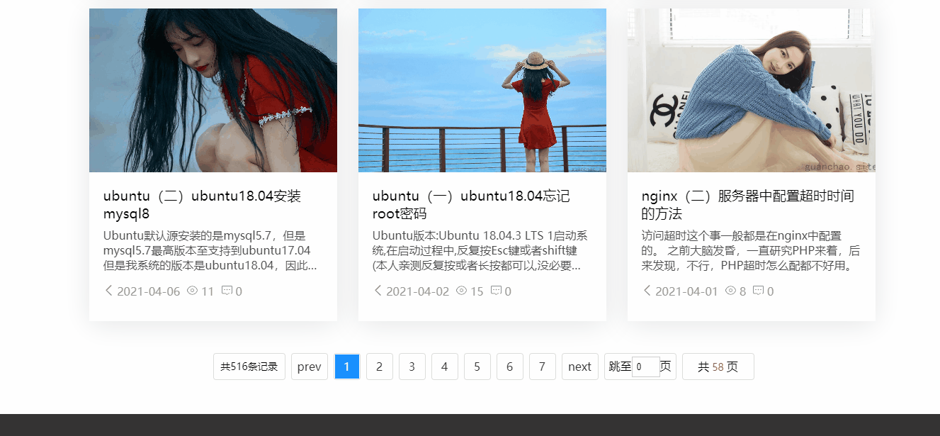 刚开始使用vue3写博客的时候,其相关配套的UI库并没有正式发布,但是我还要用,所以这里我自定义了一个分页组件:最后效果如下图所示: