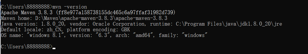 配置完环境变量后打开CMD检查是否配置成功 输入 mvn -version 回车 如下图则配置成功