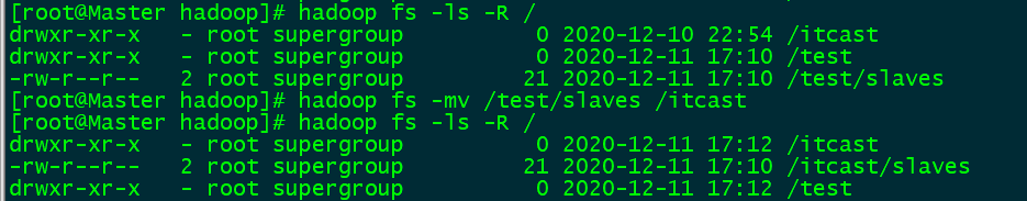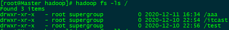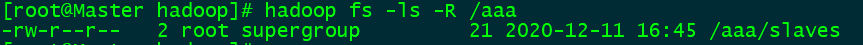 ls -R :使用方法:hadoop fs -ls -R /(递归查询)