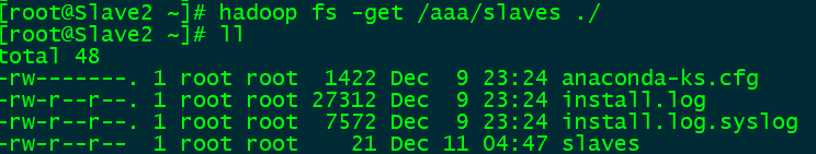 4. get:使用方法:hadoop fs -get /(将hadfs中的文件下载到本地)