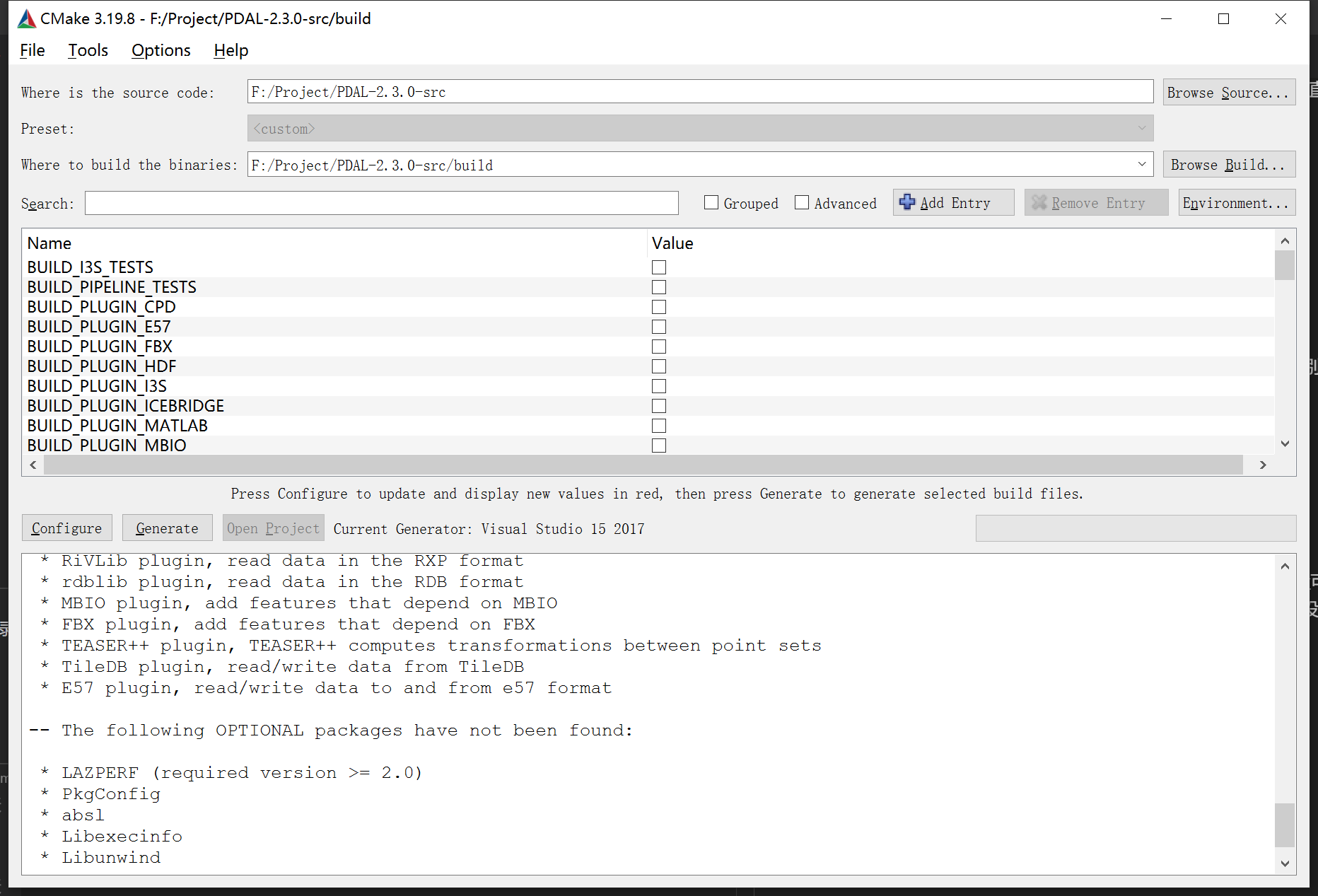 5.点击Generate,即会生成VS2017的工程,生成完成后,点击Open Project按钮,也可以直接去build文件夹中打开。