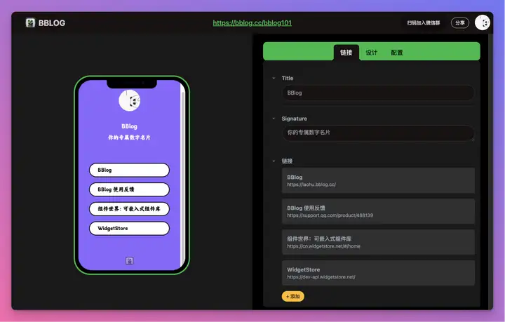 数字名片 BBlog:使用一个链接,快速创建和分享你的信息主页和数字花园