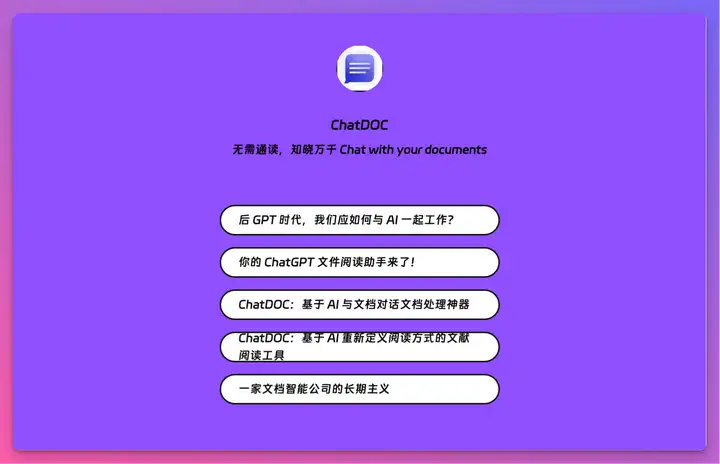 介绍:ChatDOC 是一款基于 GPT 的 AI 模型,允许 GPT 与用户所指定的文档进行对话,处理用户的专属数据的 AI 阅读辅助工具。