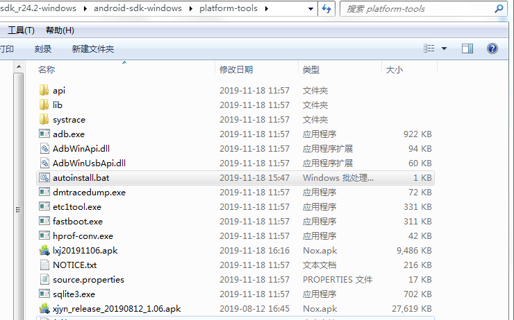 在adb同一目录下,新增**.bat,如autoinstall.bat,内容如下:
