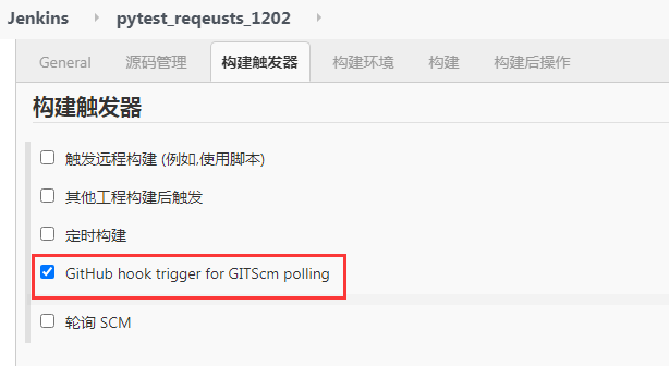 在job设置里面构建触发器,勾选“GitHub hook trigger for GITScm polling”