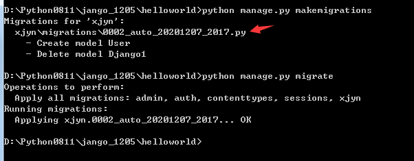 接着打开cmd,cd到django的根目录,执行2个指令;