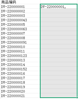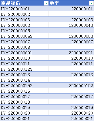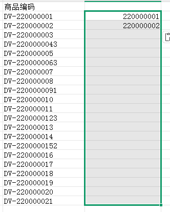 提取商品编码的数字部分,复制、粘贴、选中、Ctrl+e;