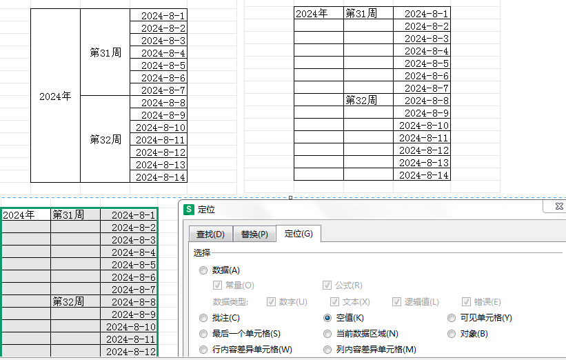 7.4 Ctrl+G定位,选中区域,Ctrl+G,选择空值,输入0,Ctrl+enter键,所有空值区域全部填充为0;