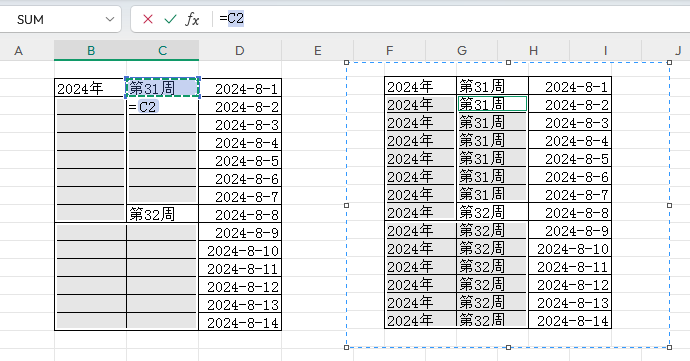 选择区域,合并单元格;选择区域,ctrl+G,空值,=C2,Ctrl+Enter;