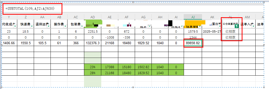 1.使用subtotal函数