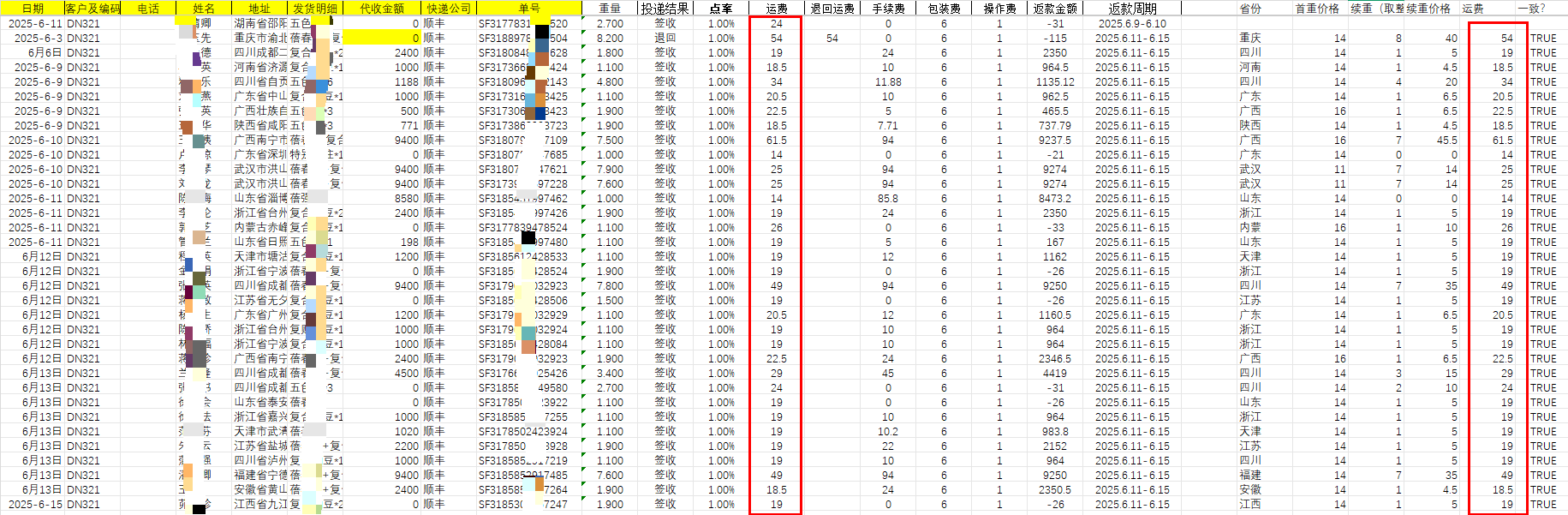4.匹配省份的续重价格;=续重价格*续重;=VLOOKUP(U688,顺丰!A:C,3,0)*W688