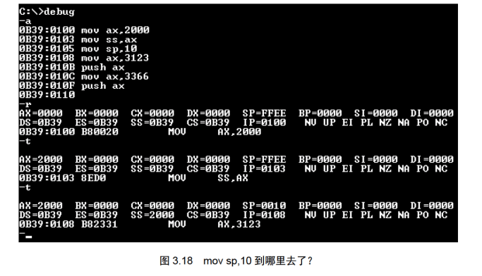 mov ss,ax的下一条应该是mov sp,10,但变成了mov ax,3123